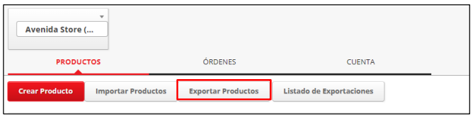 Primero, vamos a realizar una exportación de nuestro catálogo presionando el botón “Exportar Productos” en la pestaña de “Productos” de ShopAdmin.
