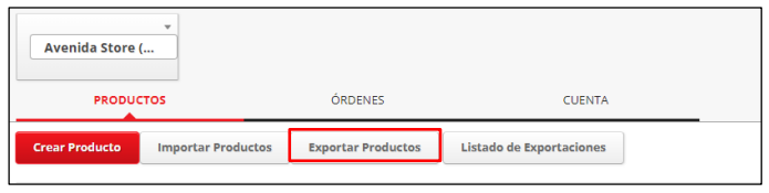 Primero, vamos a realizar una exportación de nuestro catálogo presionando el botón “Exportar Productos” en la pestaña de “Productos” de ShopAdmin.