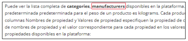 - Manufacturer (Marca): Nombre de la marca del producto tal cual aparece en el listado. Se pueden visualizar las marcas activas en la pestaña de “Importar Productos” de shopadmin.