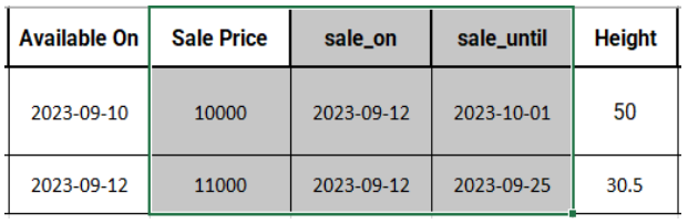 - sale_on: Fecha de inicio de la oferta, en formato aaaa-mm-dd.