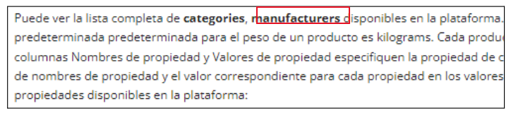 Nombre de la marca del producto tal cual aparece en el listado. Se pueden visualizar las marcas activas en la pestaña de “Importar Productos” de shopadmin.