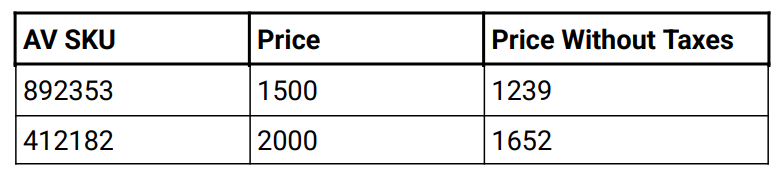 - Price Without Taxes