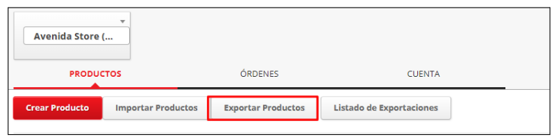 Primero, vamos a realizar una exportación de nuestro catálogo presionando el botón “Exportar Productos” en la pestaña de “Productos” de ShopAdmin.